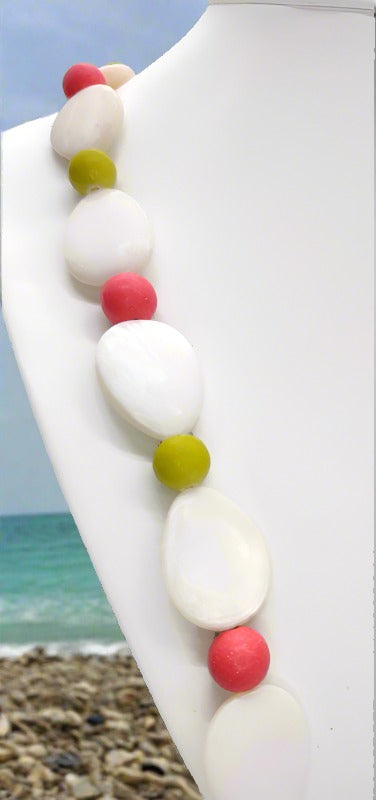 Alki Beach Shell, Coral & Lime Bead Jewelry Set
